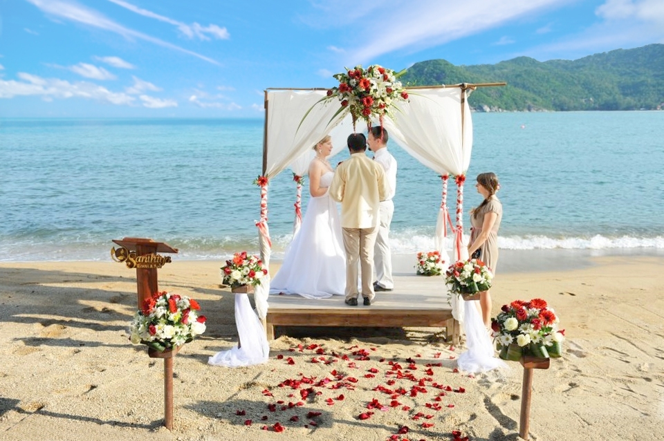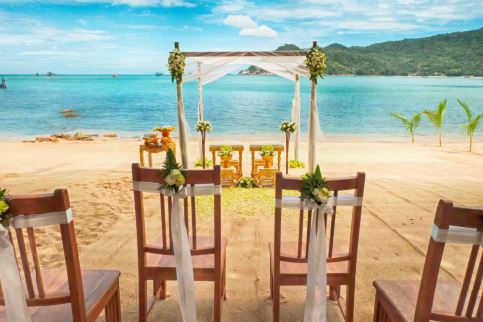 Santhiya Koh Phangan Resort & Spa, with its enchanting teak structures and glistening azure waters as a backdrop, provides an idyllic setting for a truly unforgettable wedding celebration.